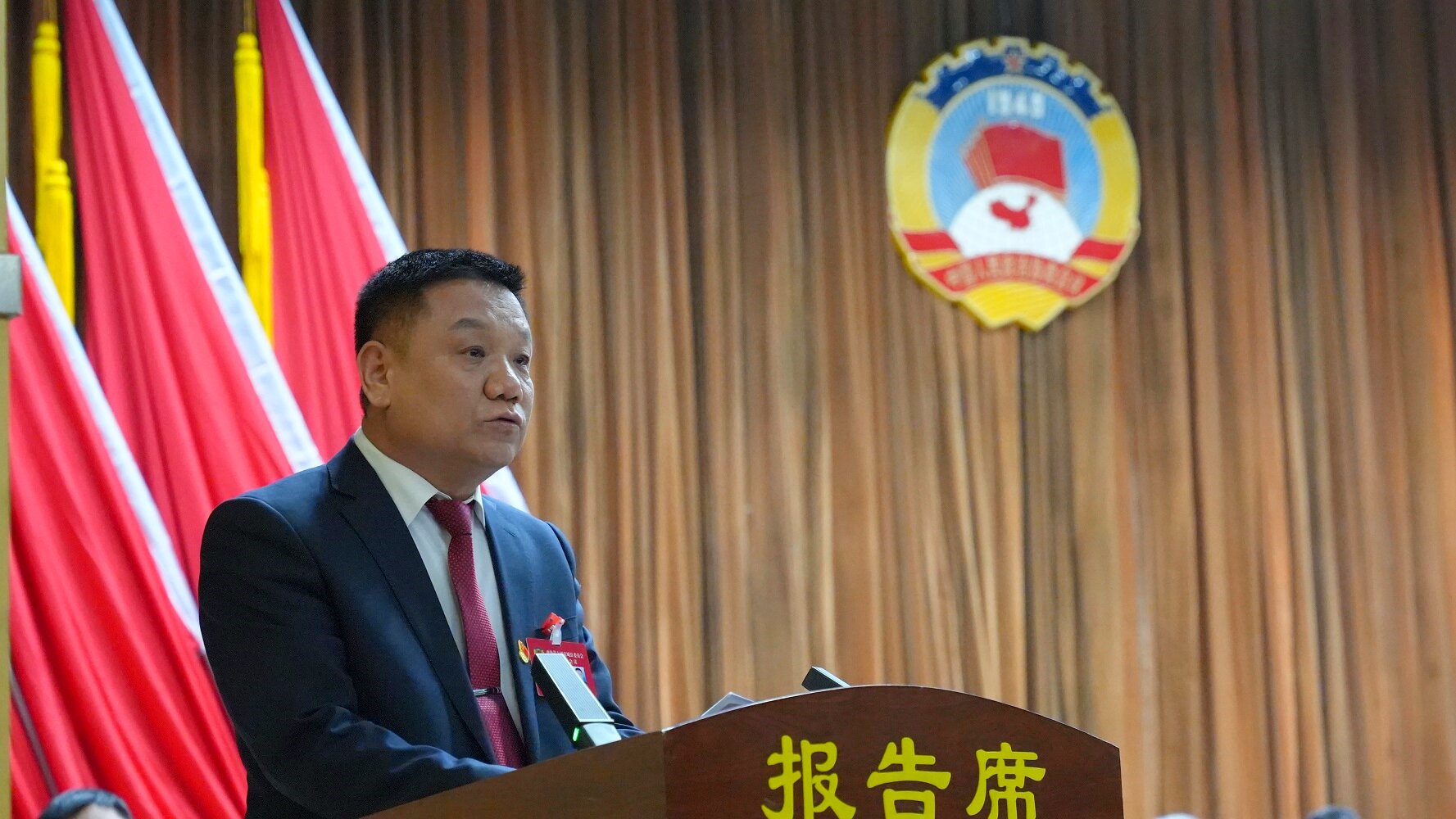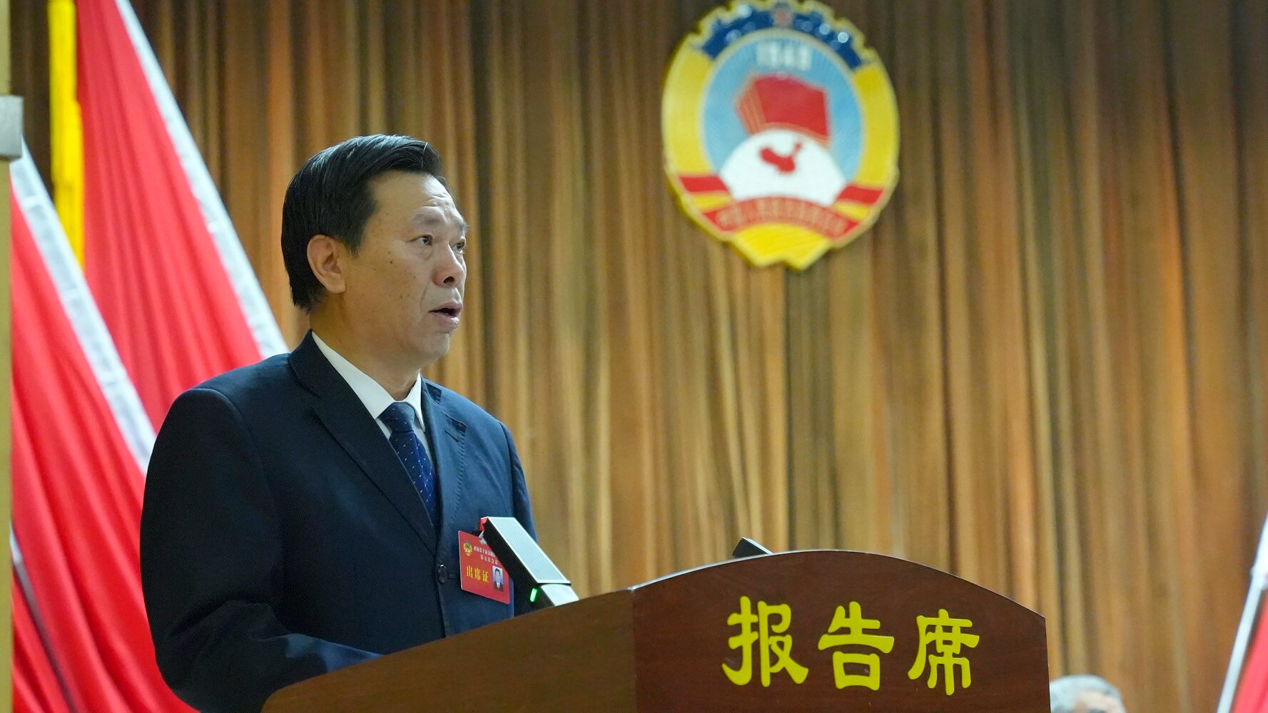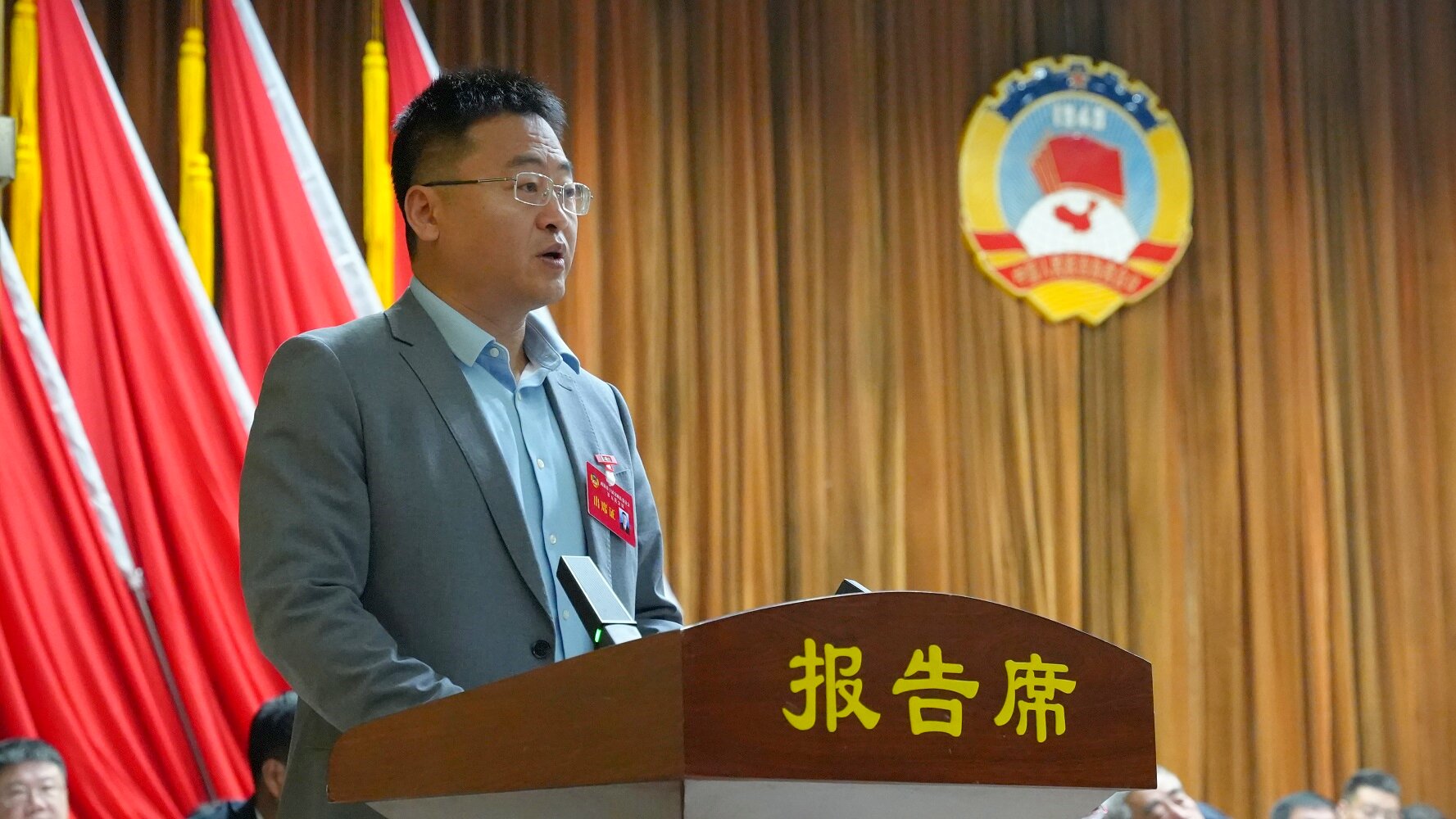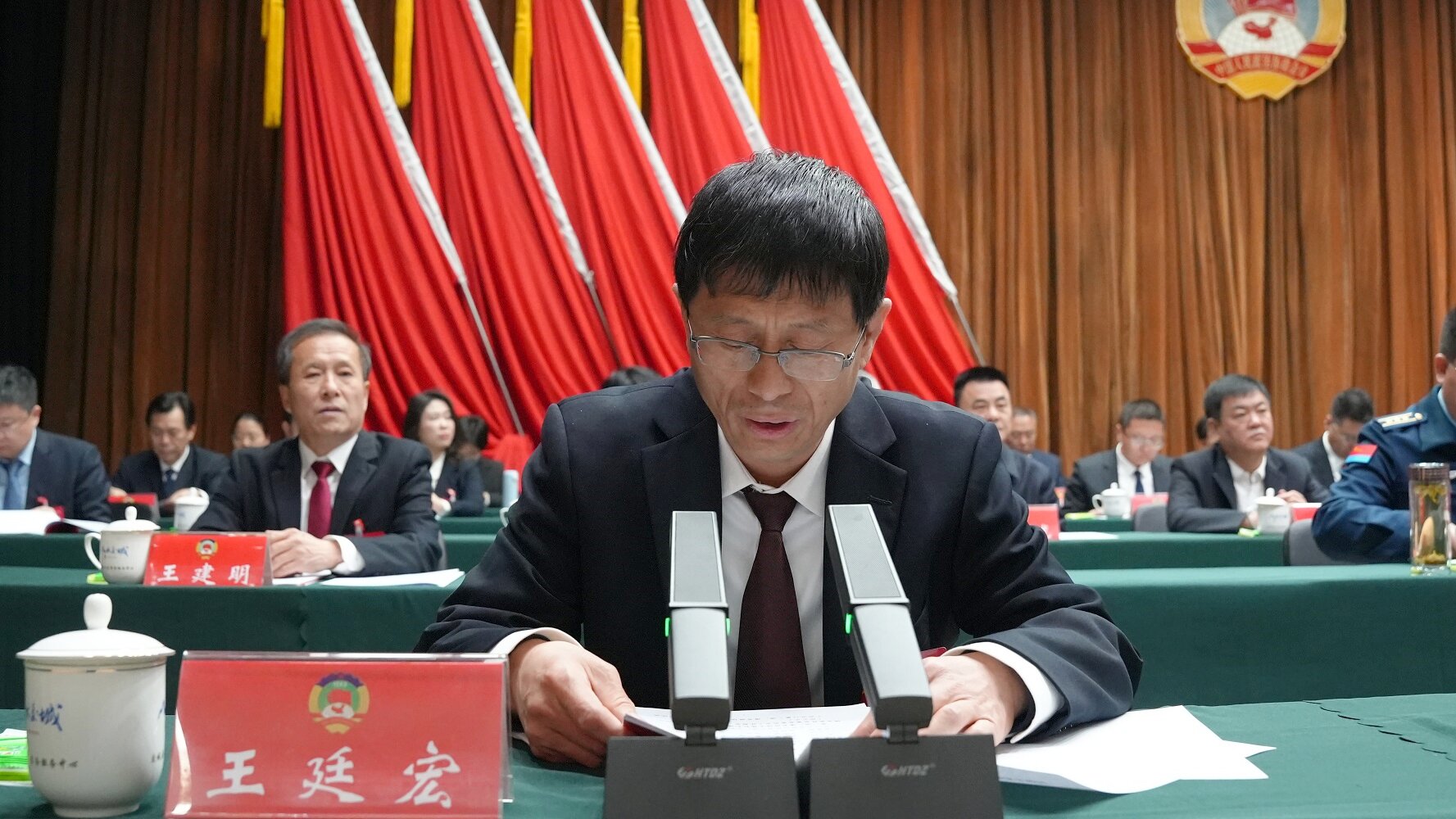 ????權(quán)扣維代表政協(xié)第十屆交城縣委員會常務委員會向大會作工作報告。
