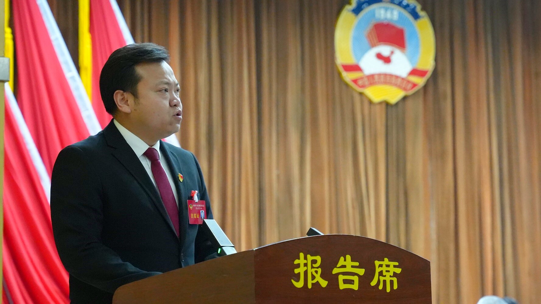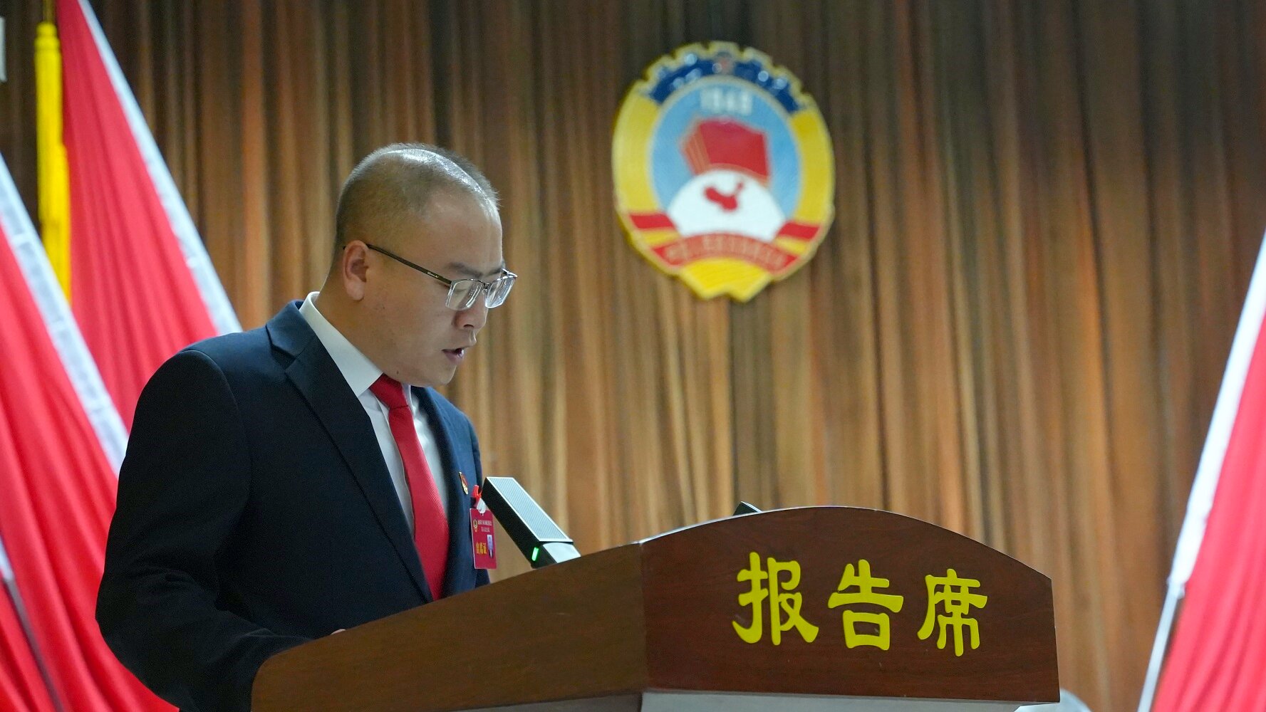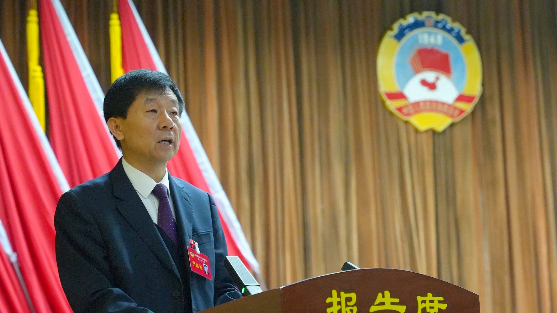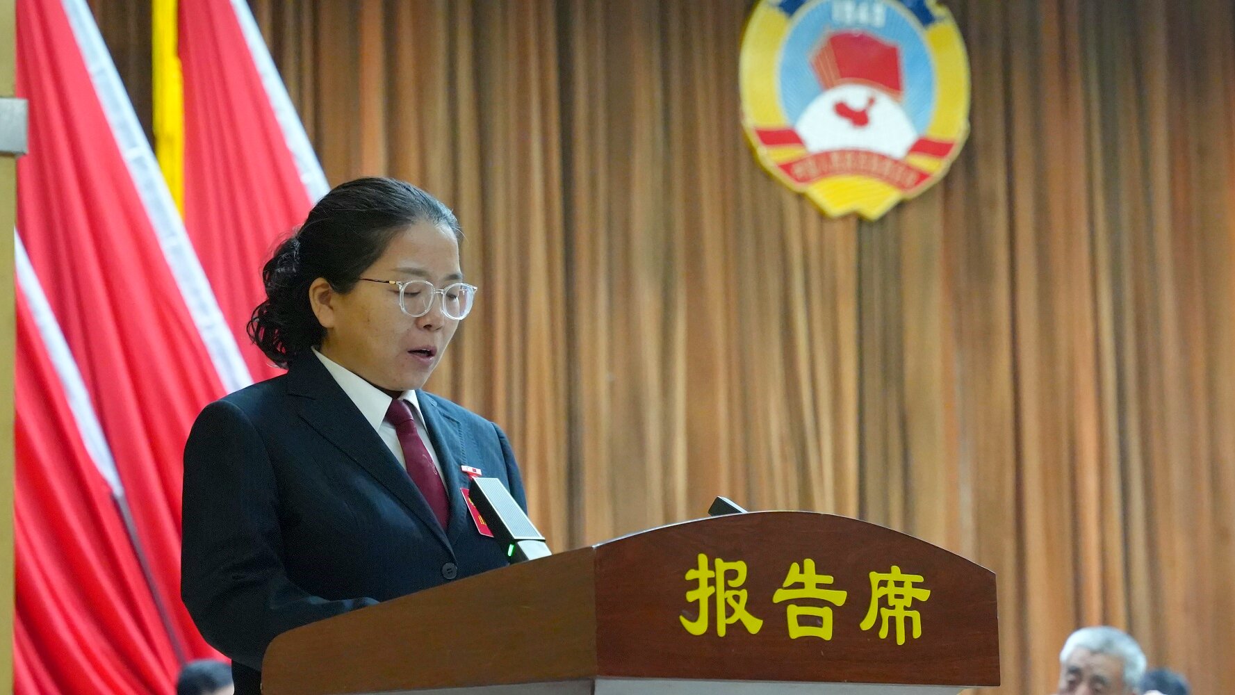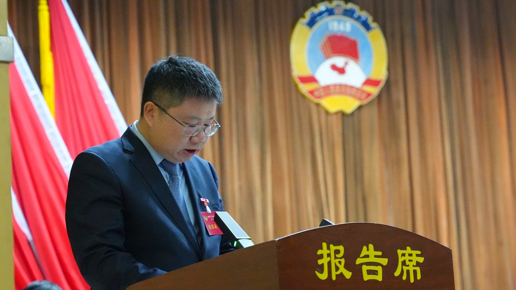 ????權(quán)扣維代表政協(xié)第十屆交城縣委員會常務委員會向大會作工作報告。
