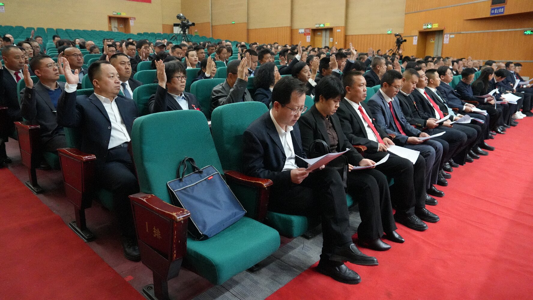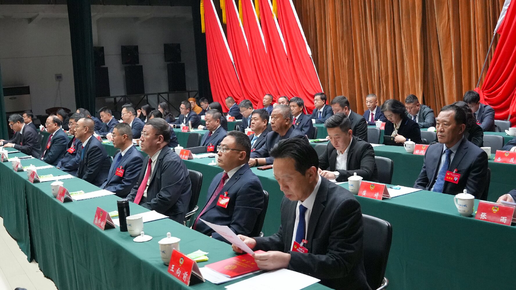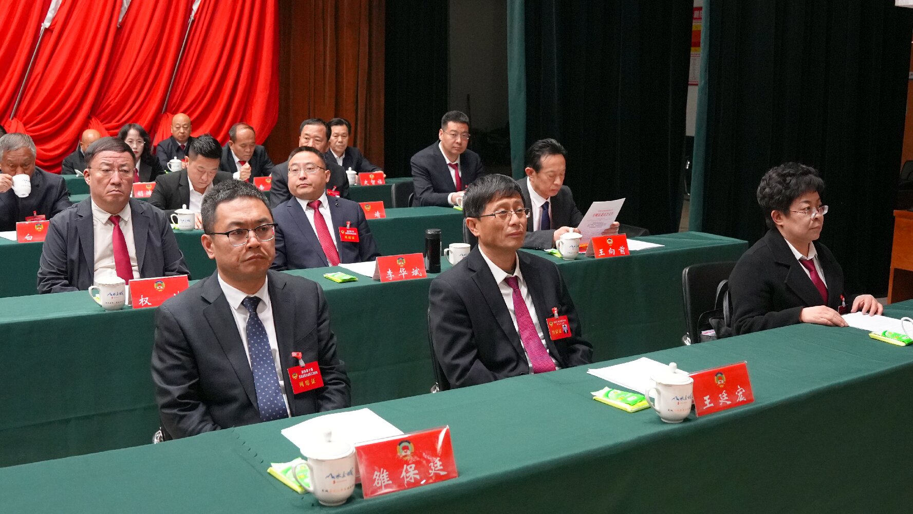 ????大會(huì)執(zhí)行主席權(quán)扣維、韓笑豐、王廷宏、程通彥、陳麗彬、張耀軍在主席臺(tái)前排就座。