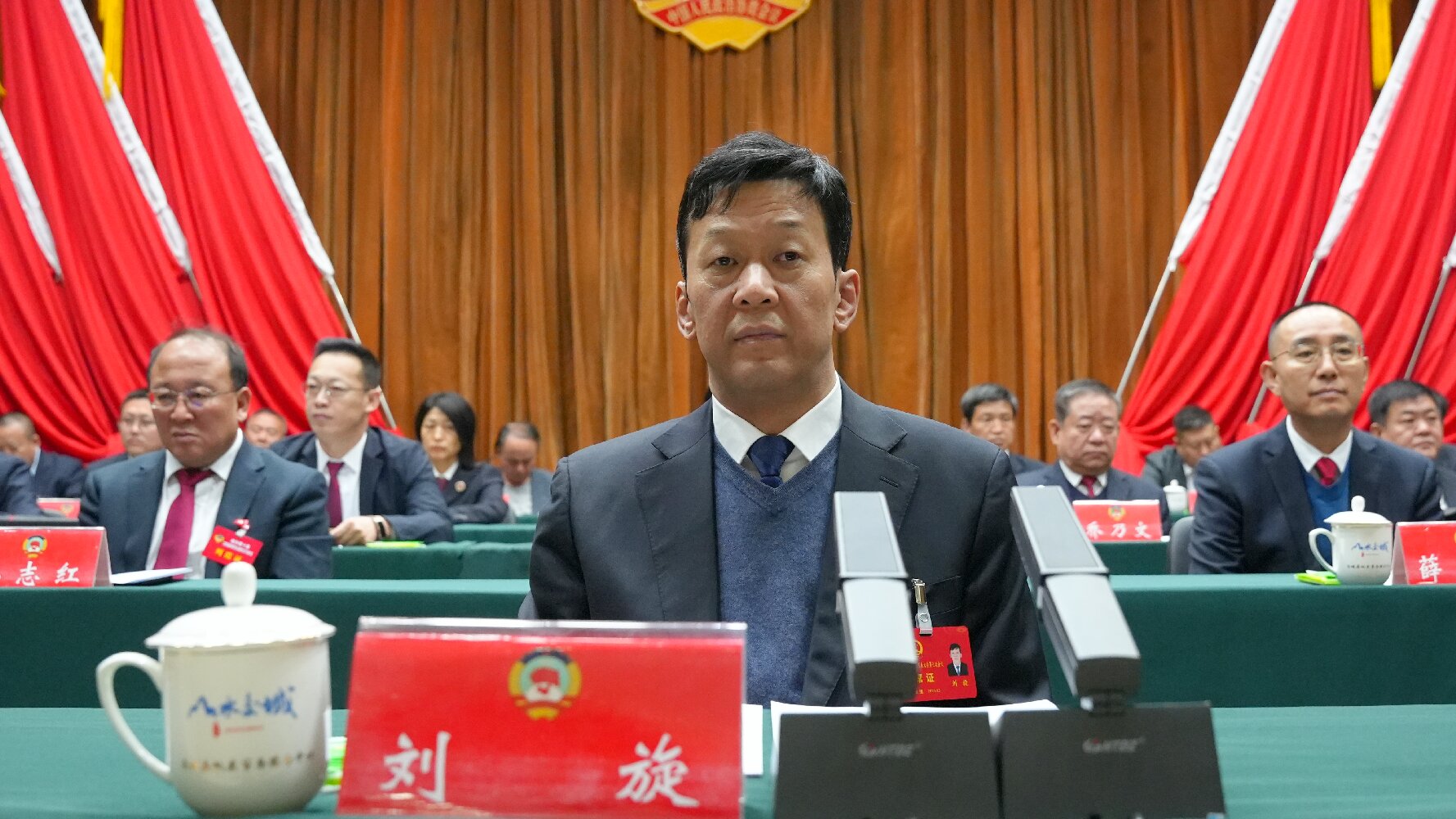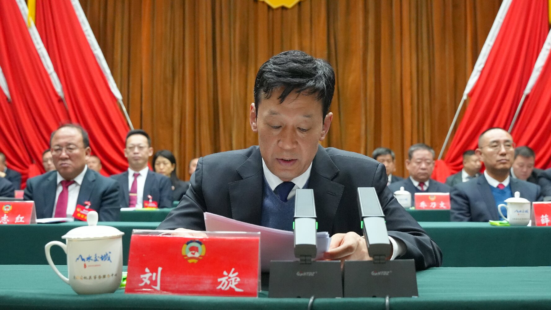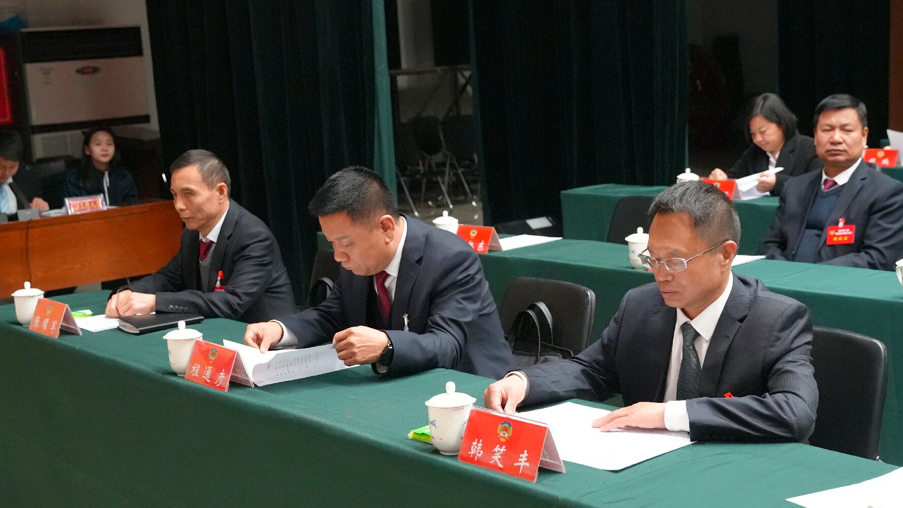 ????大會(huì)執(zhí)行主席權(quán)扣維、韓笑豐、王廷宏、程通彥、陳麗彬、張耀軍在主席臺(tái)前排就座。